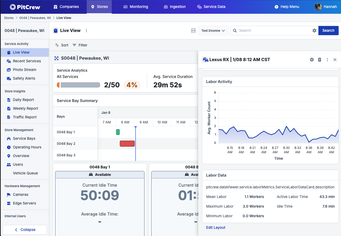 PitCrew gives store managers a live window into how much labor is being applied to each in-progress service—and sends an alert when that labor drops to zero for too long.